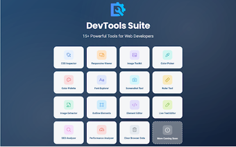 DevTools Suite è un'estensione gratuita per browser che offre una gamma completa di strumenti utili per sviluppatori e designer web. Con un'interfaccia moderna e pulita, raccoglie funzionalità come l'ispettore CSS, il visualizzatore responsivo e il toolkit per le immagini, il tutto accessibile da un'unica icona nella barra degli strumenti. Gli utenti possono modificare il CSS in tempo reale, testare il design su vari dispositivi e ottimizzare le immagini senza dover passare tra diverse estensioni.
